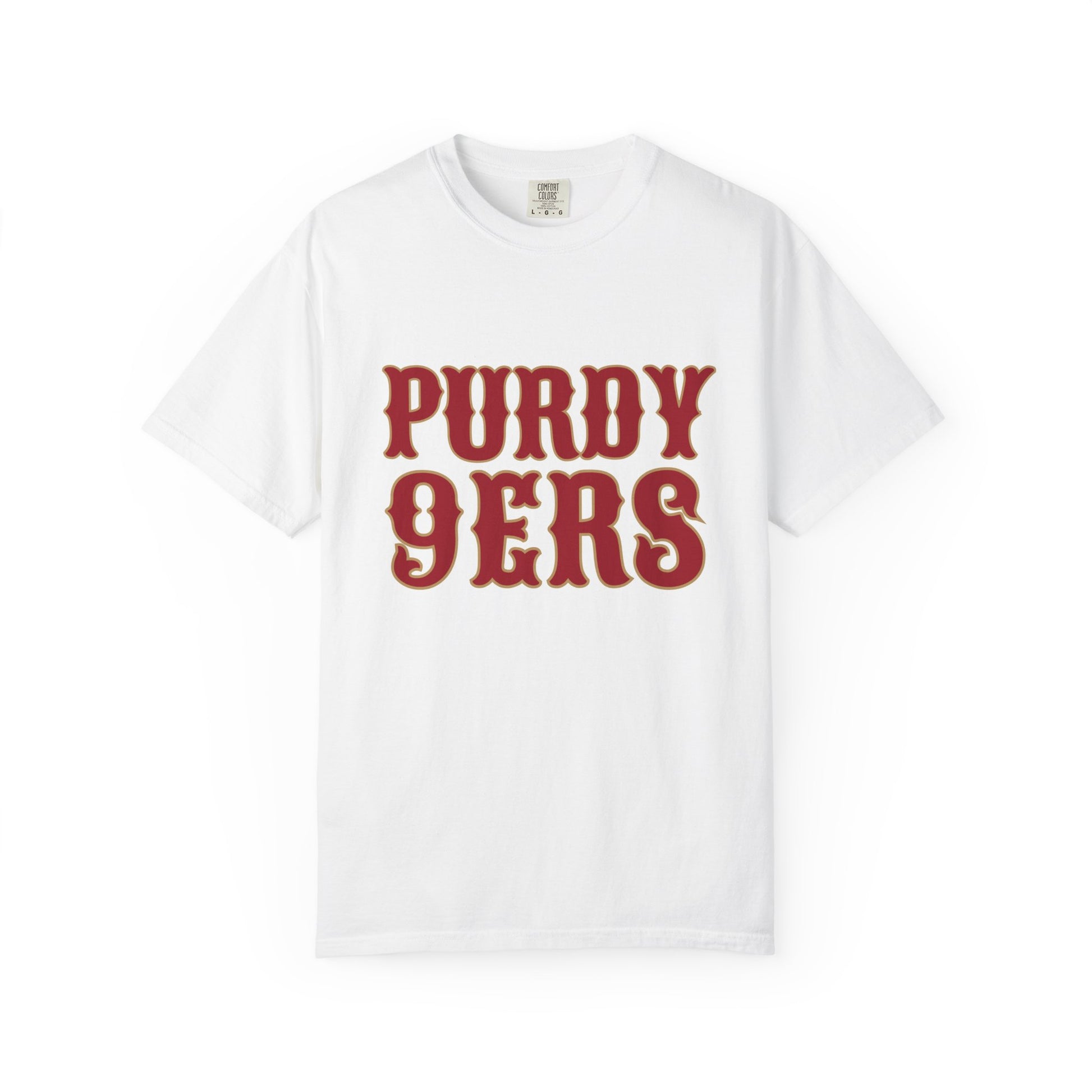 Celebrate the undeniable magic of the San Francisco 49ers and their star QB with our 'Purdy 9ers' shirt! This Brock Purdy 49ers t-shirt is the perfect blend of team pride and a witty nod to the quarterback who's taken the league by storm. Whether you're at Levi's Stadium, hosting a tailgate party, or cheering from your couch on game day, this 49ers fan apparel lets everyone know you're all in for the Red and Gold, especially with Purdy leading the charge!